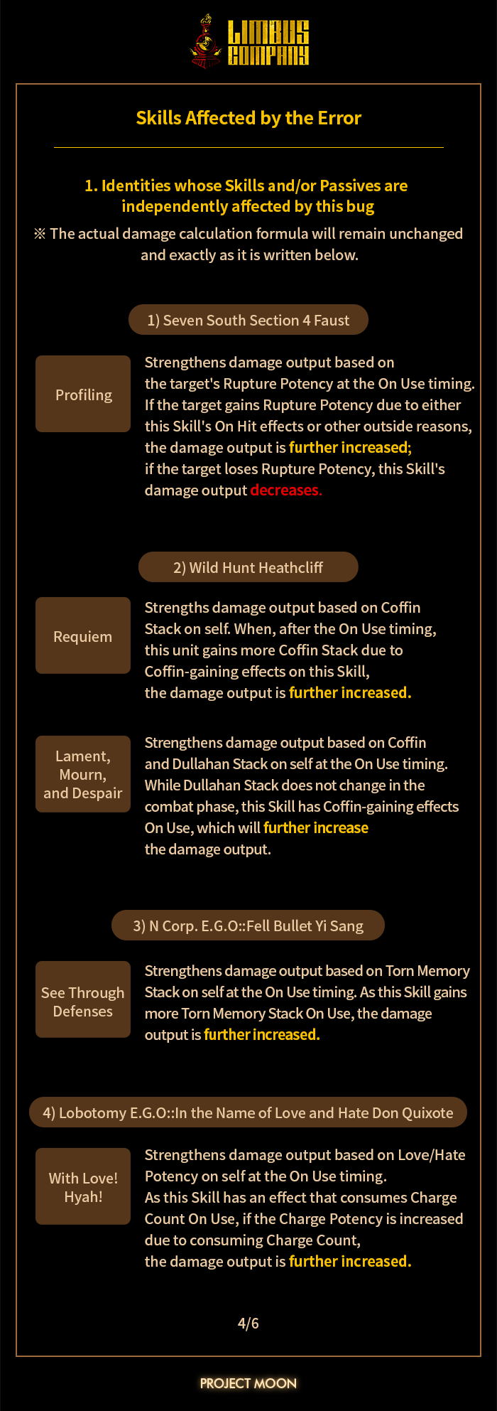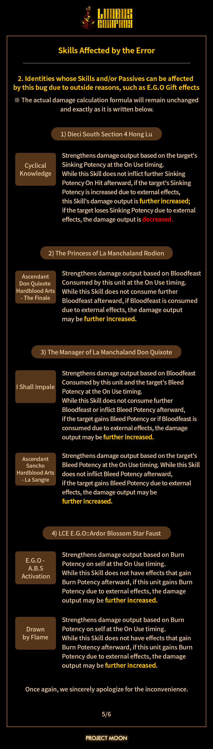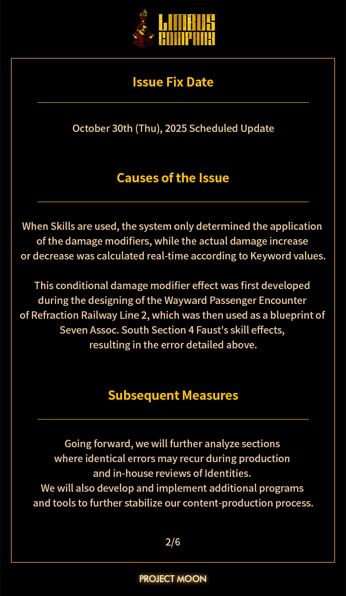 [Limbus News] Notice: An issue with certain skills with "Damage+M% for every N Keyword" effect