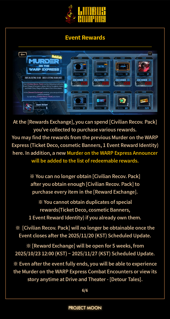 [Limbus News] New Content - Ch 6.5 Murder on the WARP Express BokGak