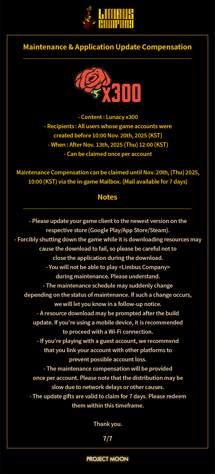 [Limbus News] Details on [000] Jeong's Office Rep Ishmael – 2025.11.06 (KST) The 7th Walpurgis Night Target Extraction