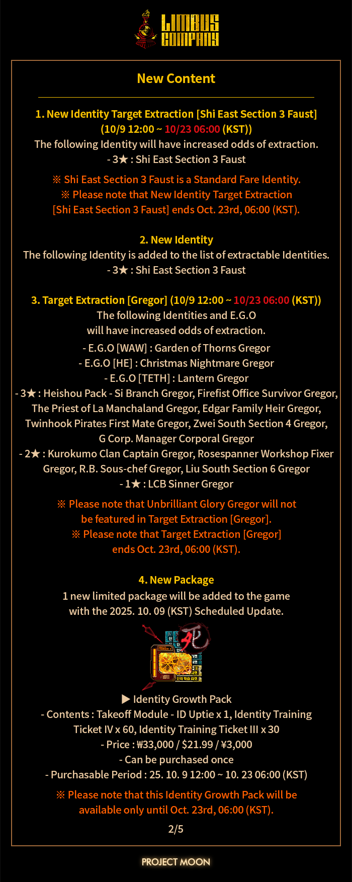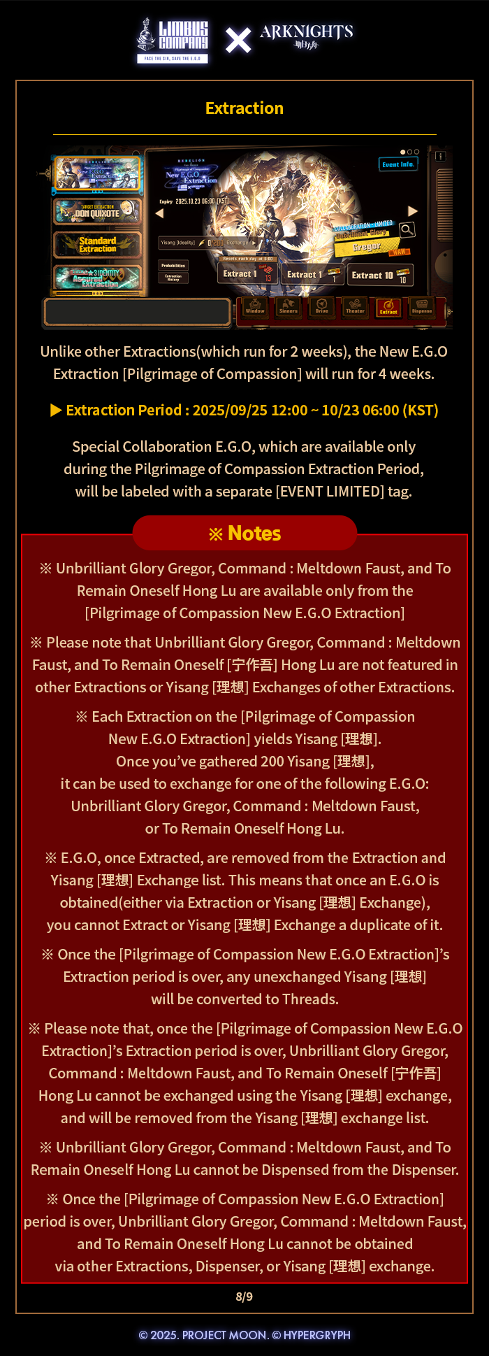 [Limbus News] Details on [WAW] Unbrilliant Glory Gregor – 2025.09.25 (KST) Pilgrimage of Compassion New E.G.O