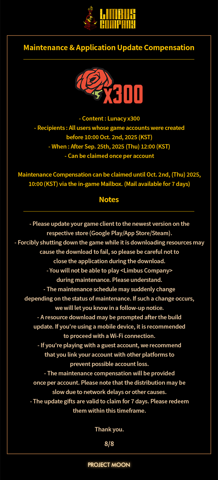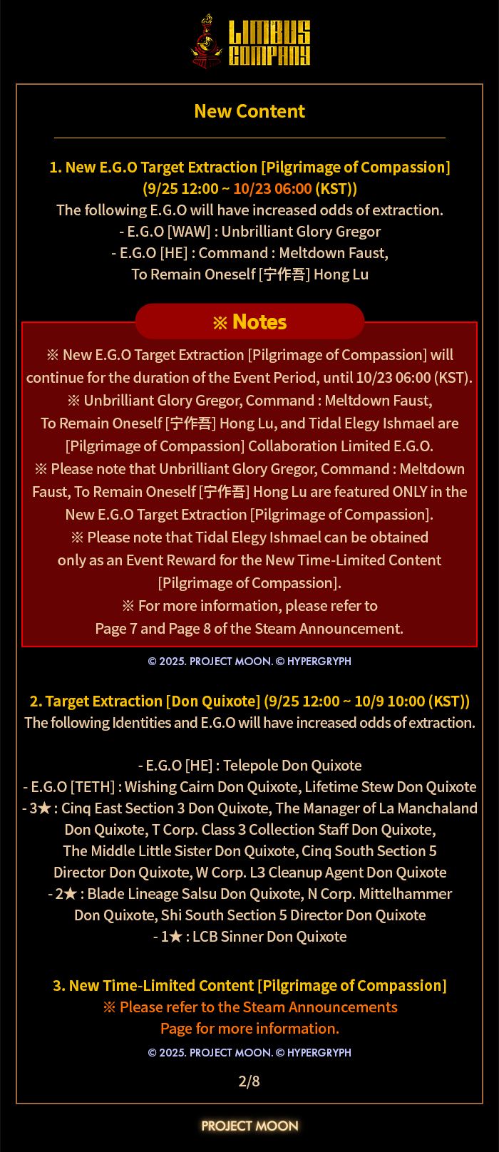 [Limbus News] New Limited-Time Content - Ch 8.5 EX Pilgrimage of Compassion