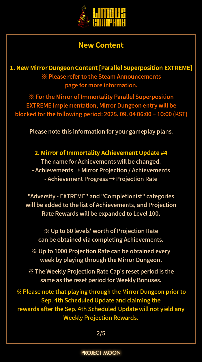 [Limbus News] New Content - Mirror of Immortality Parallel Superposition EXTREME