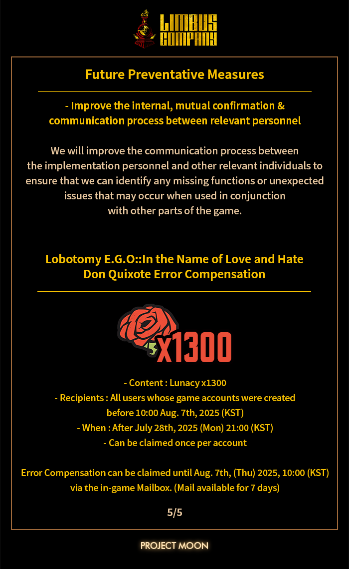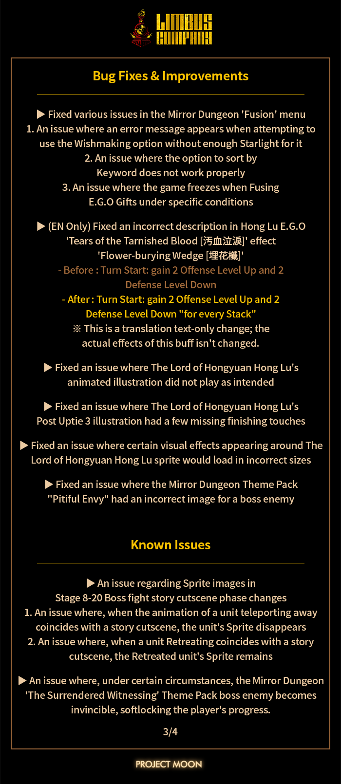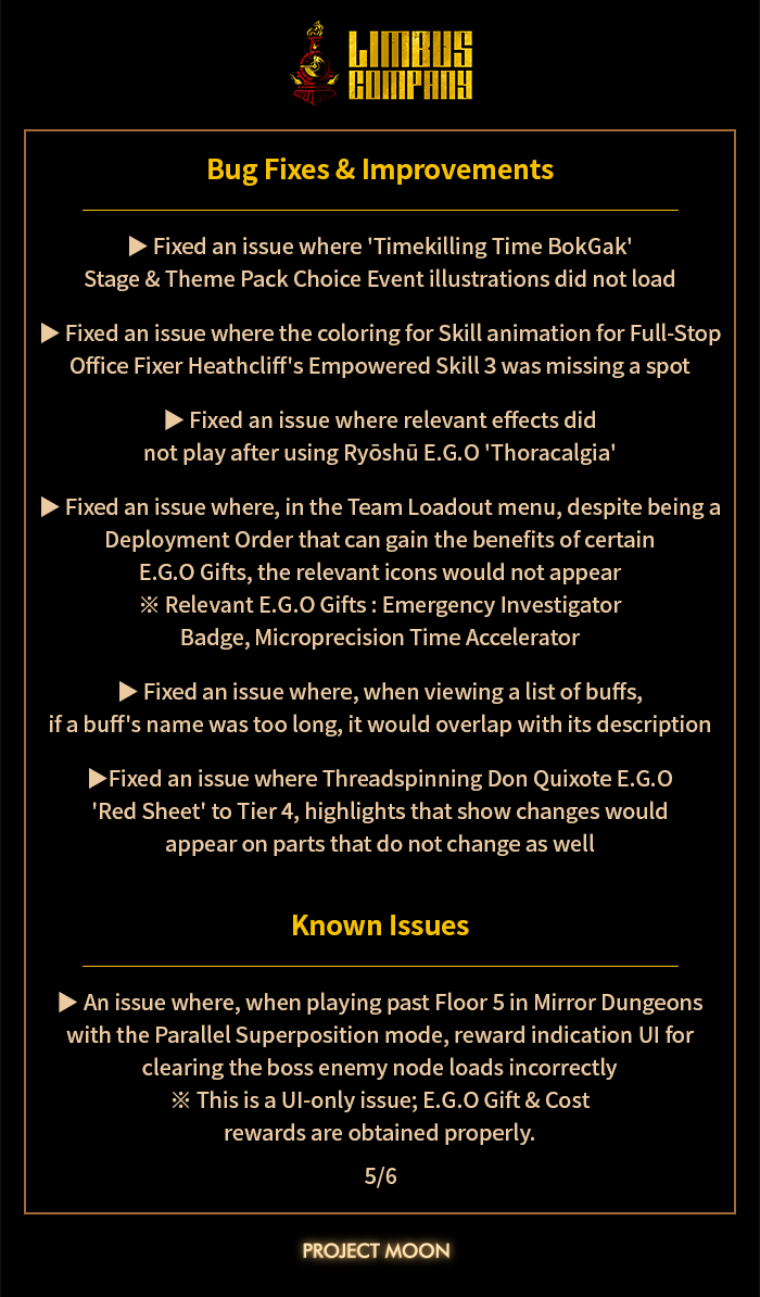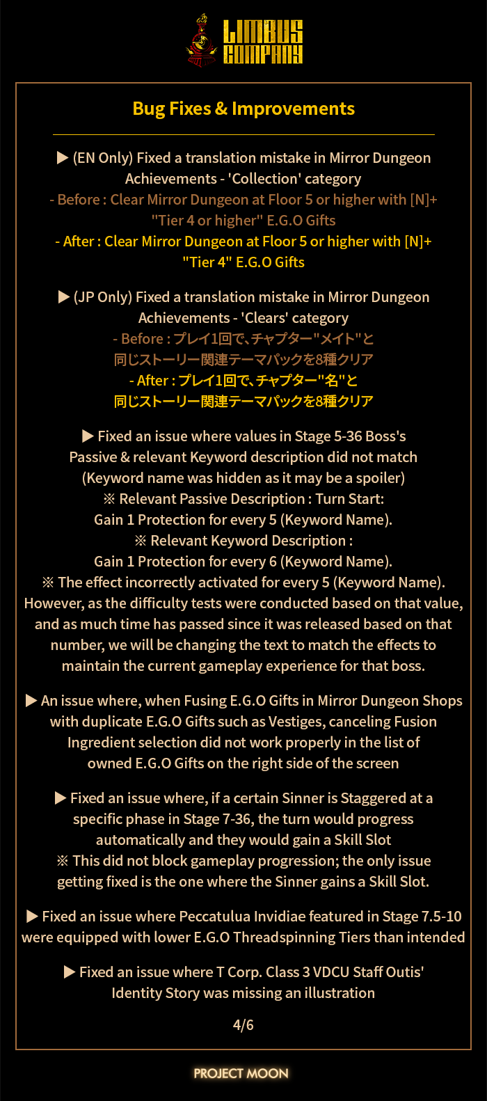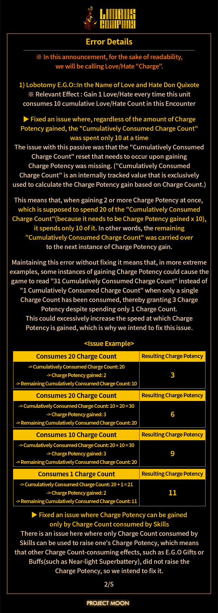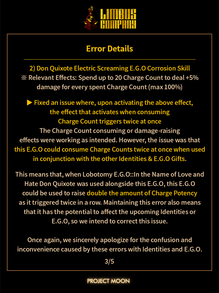 [Limbus News] Don Quixote QoH Identity & Electric Screaming E.G.O Error & Measures