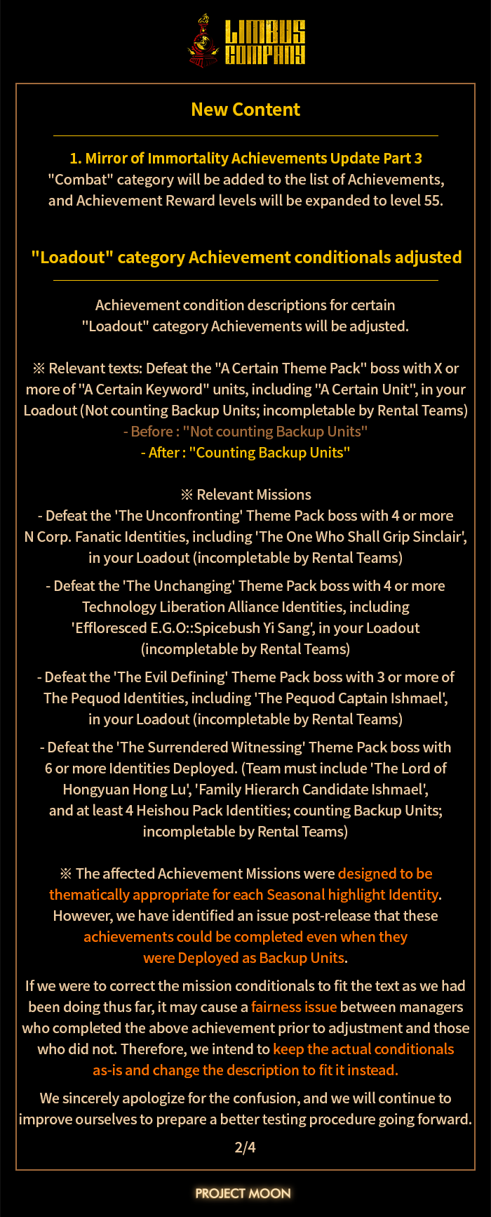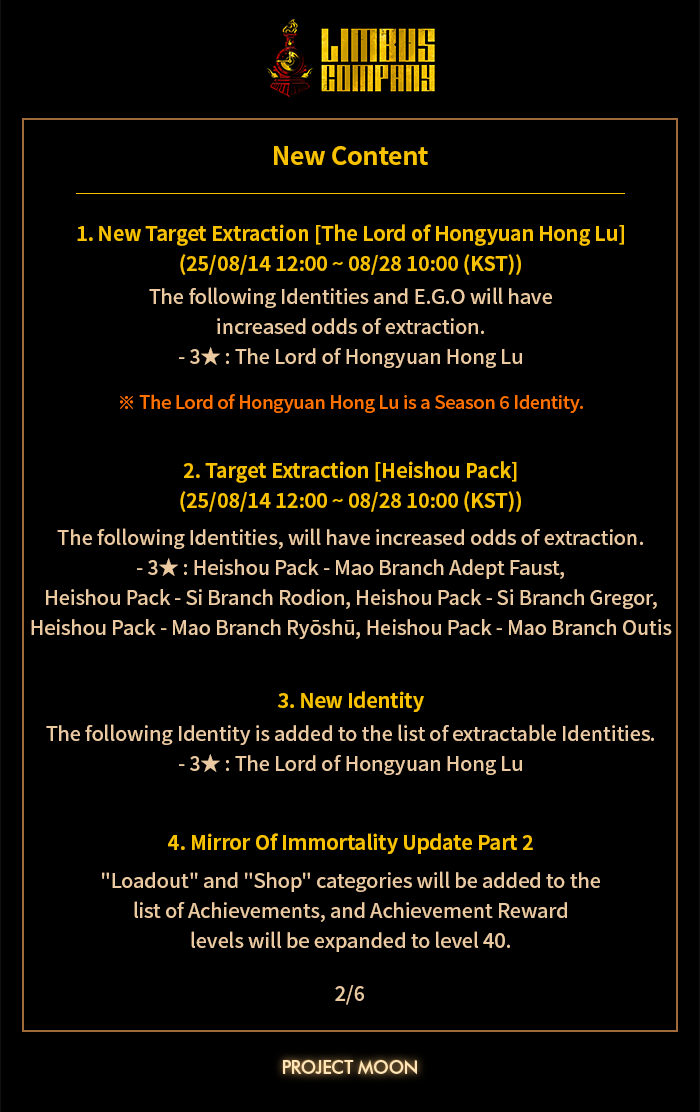 [Limbus News] New Content - Mirror of Immortality Parallel Superposition Mode & MD Achievement