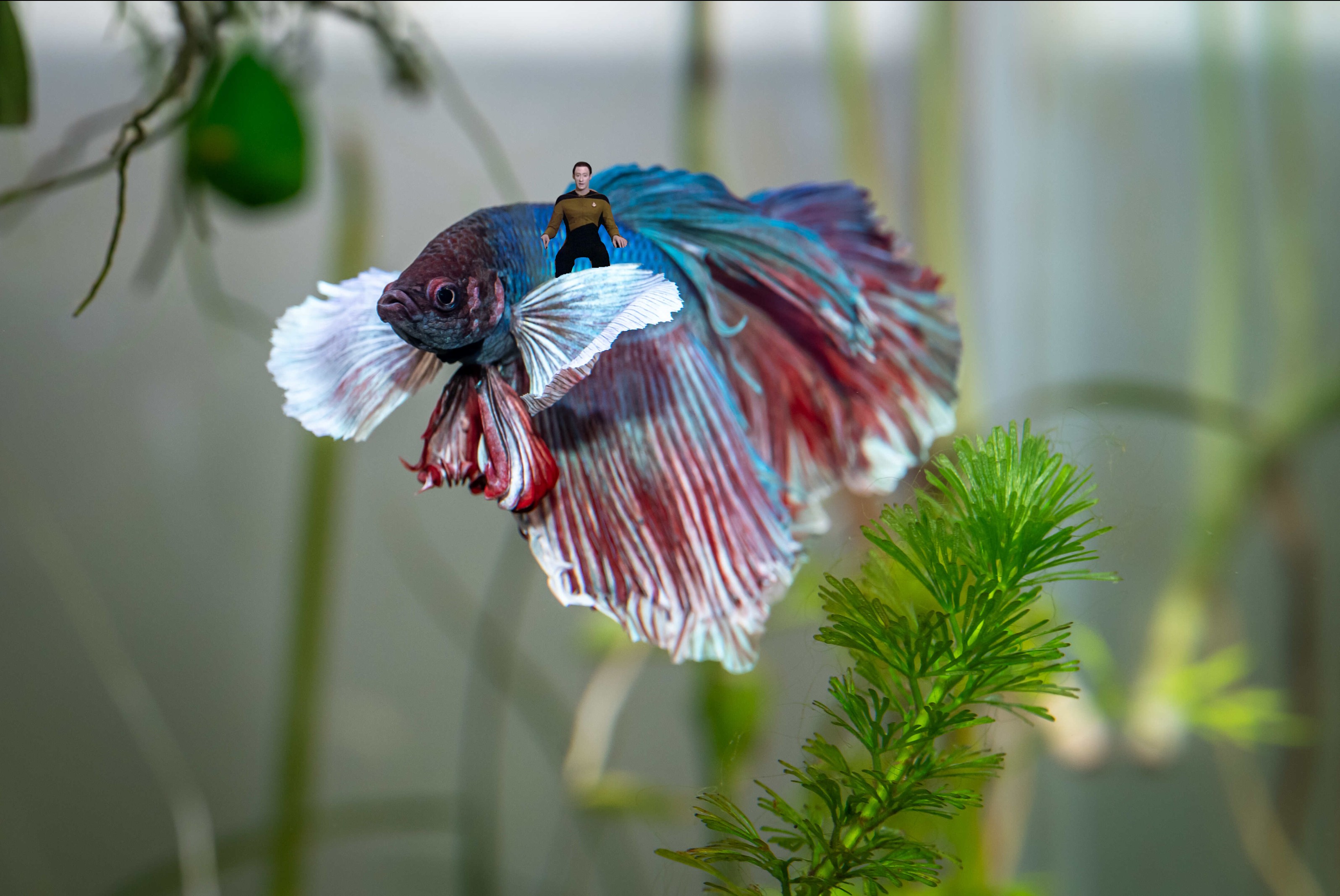 I’m at work so I don’t have time to make it. So can someone please create an image of Data either standing on or riding atop a betta fish?