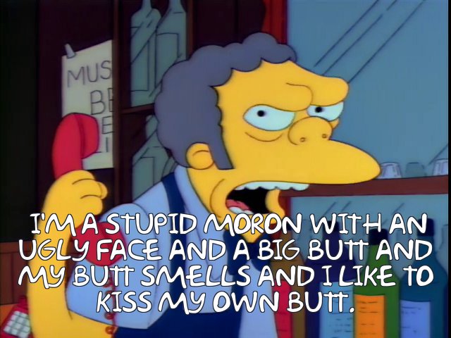As much as I enjoy this meme, I hate that Moe calls him Bart. Moe never found out who the prank caller was in the actual show.